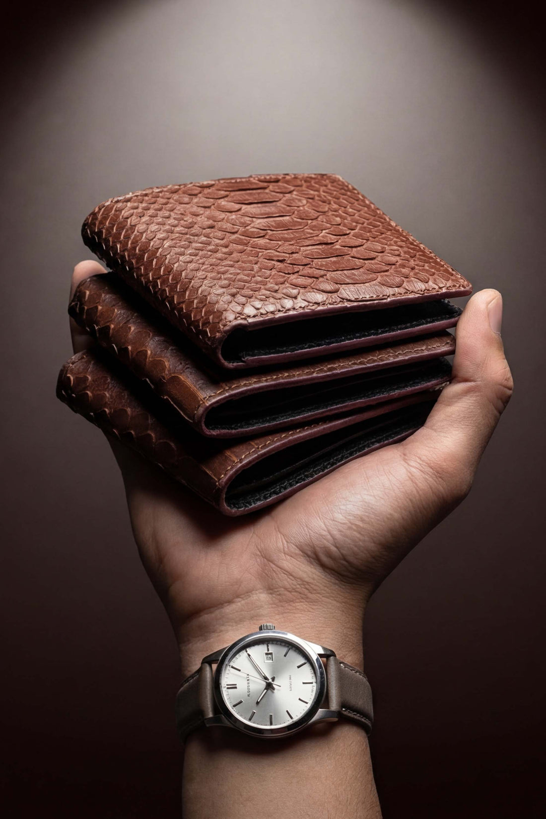 Reflecting shades of brown, this note wallet is made of snake textured leather. It offers...